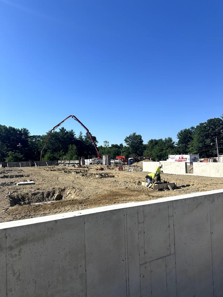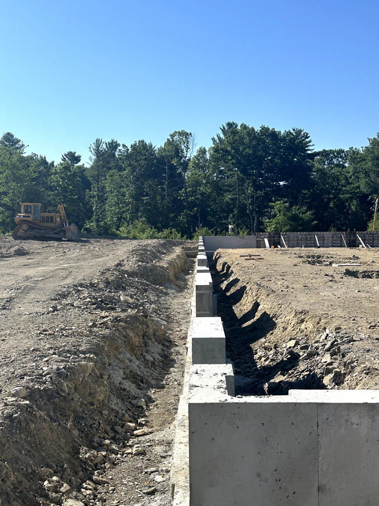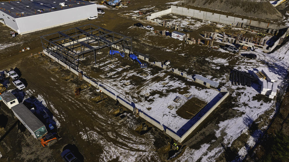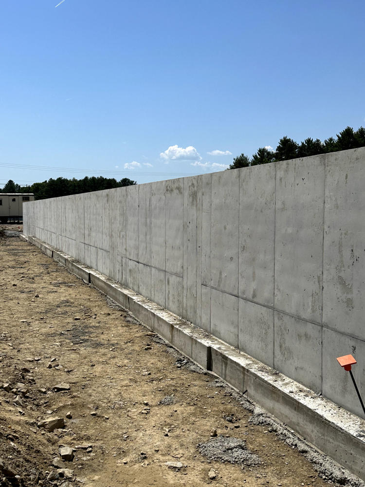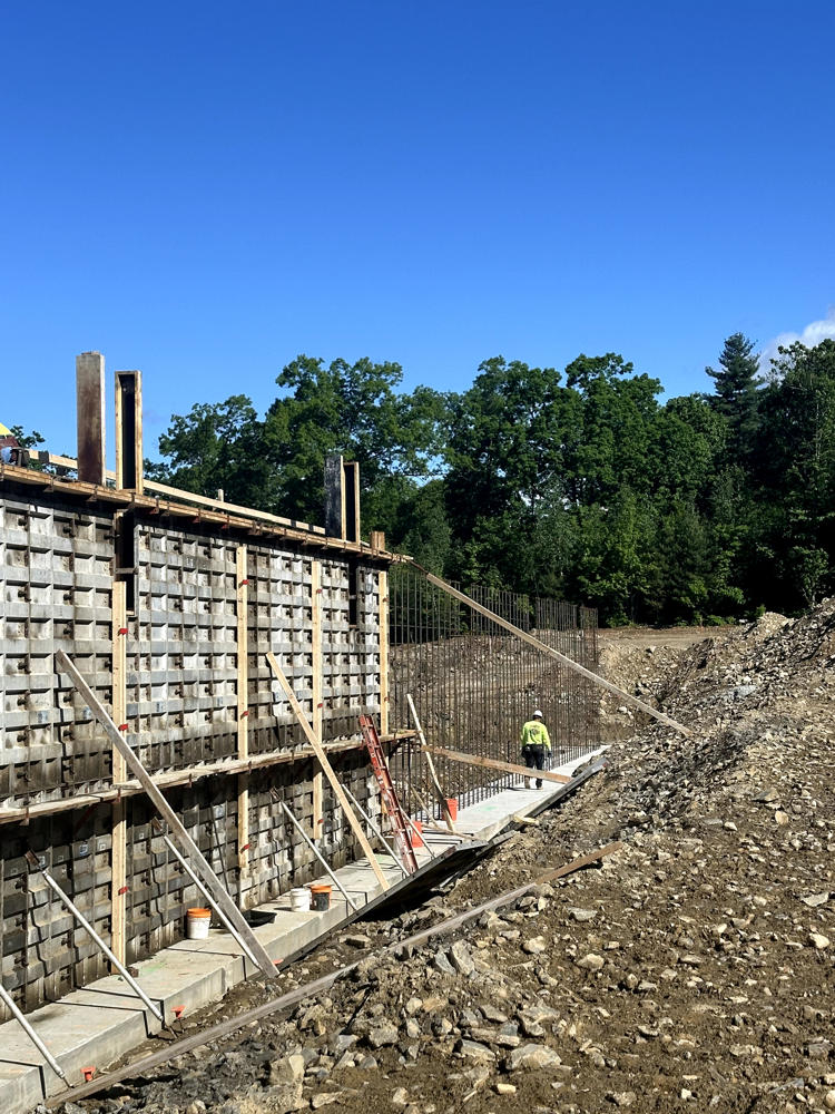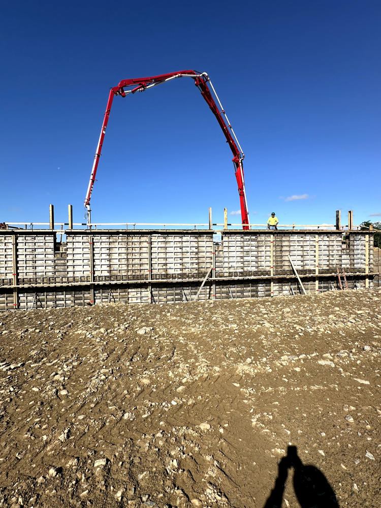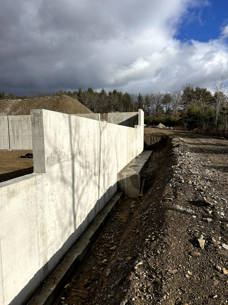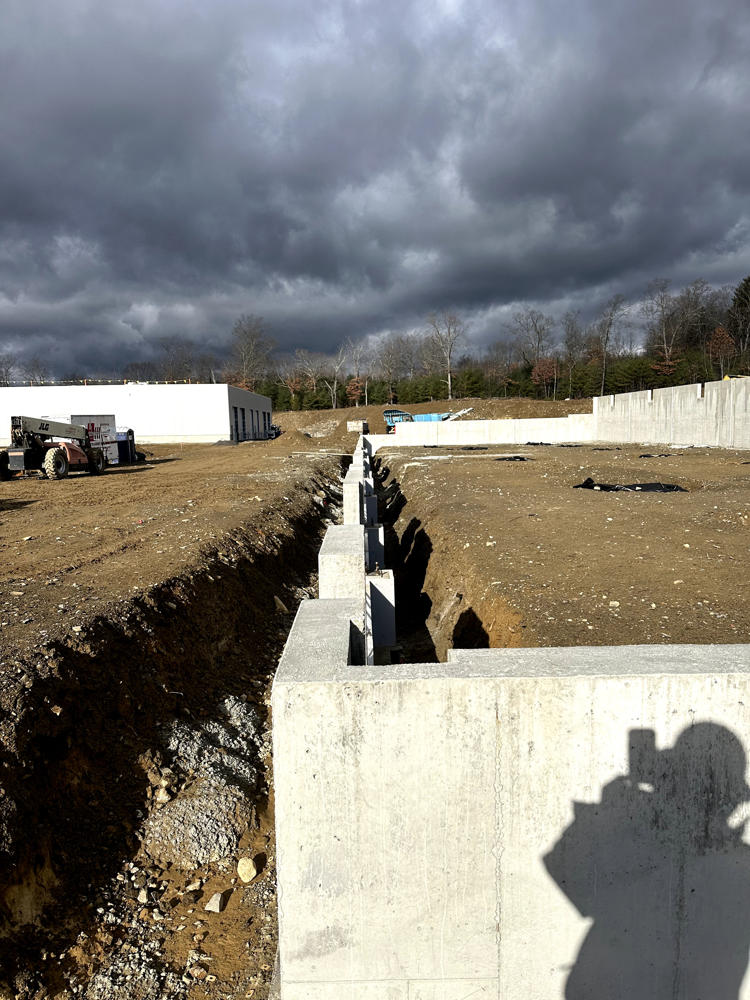 Foundation walls ranged from 15’ high to 5’ with over 35 ton of rebar installed and set over 200 anchor bolt settings for the steel structure. Interior slabs placed at a depth of 8” with fiber for the heavy loading.